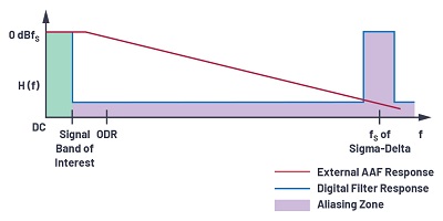 為了在高性能應(yīng)用中消除混疊,使用了更高階的抗混疊濾波器來避免任何數(shù)量的折返??够殳B濾波器是一種低通濾波器,其帶寬限制了輸入信號,并確保信號中沒有超出可以折返的目標帶寬的頻率分量。濾波器的性能將取決于帶外信號與fS / 2的接近程度以及所需的衰減量。